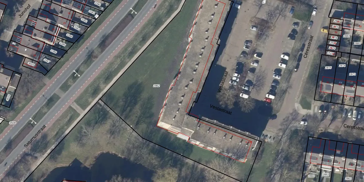 Het perceel waarop Vestastraat 55 staat heeft een oppervlakte van 4063 m². Dit is een zeer groot perceel. De perceeloppervlakte wordt geregistreerd door het Kadaster. Gedetailleerde informatie over de maten van dit perceel kunt u vinden in het rapport Kadastrale kaart met maatvoering van Vestastraat 55.