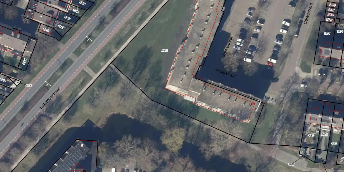 Het perceel waarop Vestastraat 73 staat heeft een oppervlakte van 4063 m². Dit is een zeer groot perceel. De perceeloppervlakte wordt geregistreerd door het Kadaster. Gedetailleerde informatie over de maten van dit perceel kunt u vinden in het rapport Kadastrale kaart met maatvoering van Vestastraat 73.