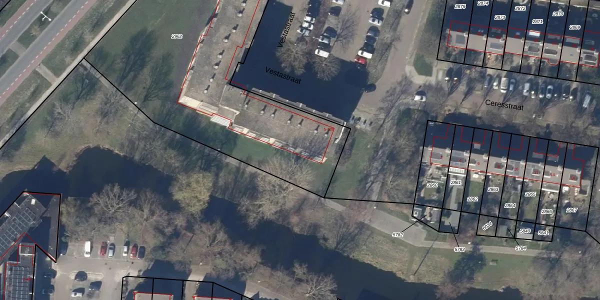 Het perceel waarop Vestastraat 89 staat heeft een oppervlakte van 4063 m². Dit is een zeer groot perceel. De perceeloppervlakte wordt geregistreerd door het Kadaster. Gedetailleerde informatie over de maten van dit perceel kunt u vinden in het rapport Kadastrale kaart met maatvoering van Vestastraat 89.