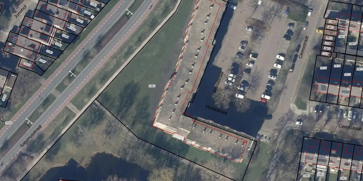 Het perceel waarop Vestastraat 99 staat heeft een oppervlakte van 4063 m². Dit is een zeer groot perceel. De perceeloppervlakte wordt geregistreerd door het Kadaster. Gedetailleerde informatie over de maten van dit perceel kunt u vinden in het rapport Kadastrale kaart met maatvoering van Vestastraat 99.