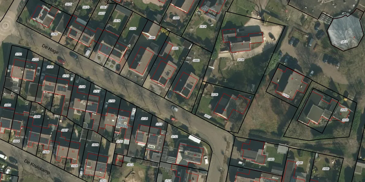 Het perceel waarop De Hage 13 staat heeft een oppervlakte van 501 m². Dit is een groot perceel. De perceeloppervlakte wordt geregistreerd door het Kadaster. Gedetailleerde informatie over de maten van dit perceel kunt u vinden in het rapport Kadastrale kaart met maatvoering van De Hage 13.