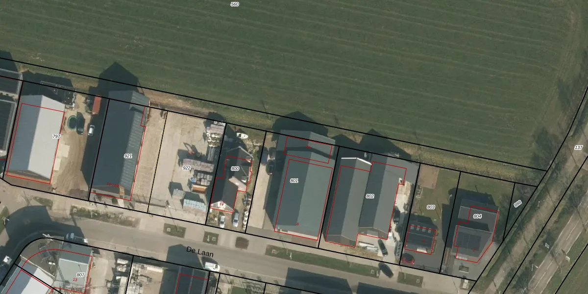 Het perceel waarop De Laan 8-A staat heeft een oppervlakte van 900 m². Dit is een groot perceel. De perceeloppervlakte wordt geregistreerd door het Kadaster. Gedetailleerde informatie over de maten van dit perceel kunt u vinden in het rapport Kadastrale kaart met maatvoering van De Laan 8-A.