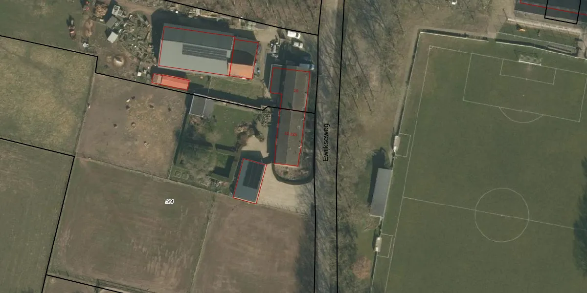 Ewijkseweg 12-A is gelegen op kadastraal perceel OVA00F164. Deze kadastrale aanduiding is uniek en wordt gebruikt door het Kadaster om eigendomsrechten en andere zakelijke rechten vast te leggen. Het perceel maakt onderdeel uit van de kadastrale gemeente Overasselt.
