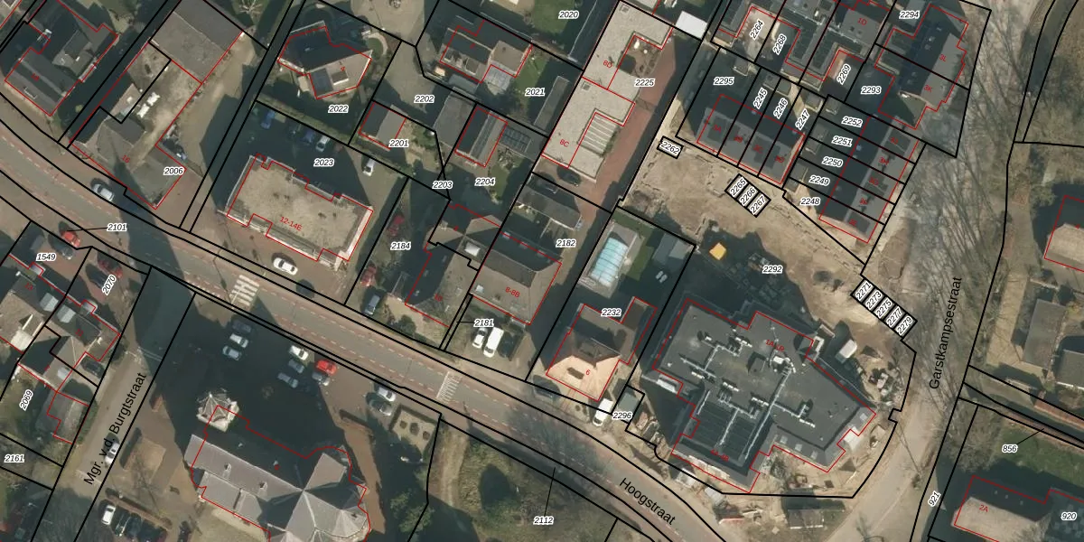 Hoogstraat 8-A is gelegen op kadastraal perceel OVA00C2182. Deze kadastrale aanduiding is uniek en wordt gebruikt door het Kadaster om eigendomsrechten en andere zakelijke rechten vast te leggen. Het perceel maakt onderdeel uit van de kadastrale gemeente Overasselt.