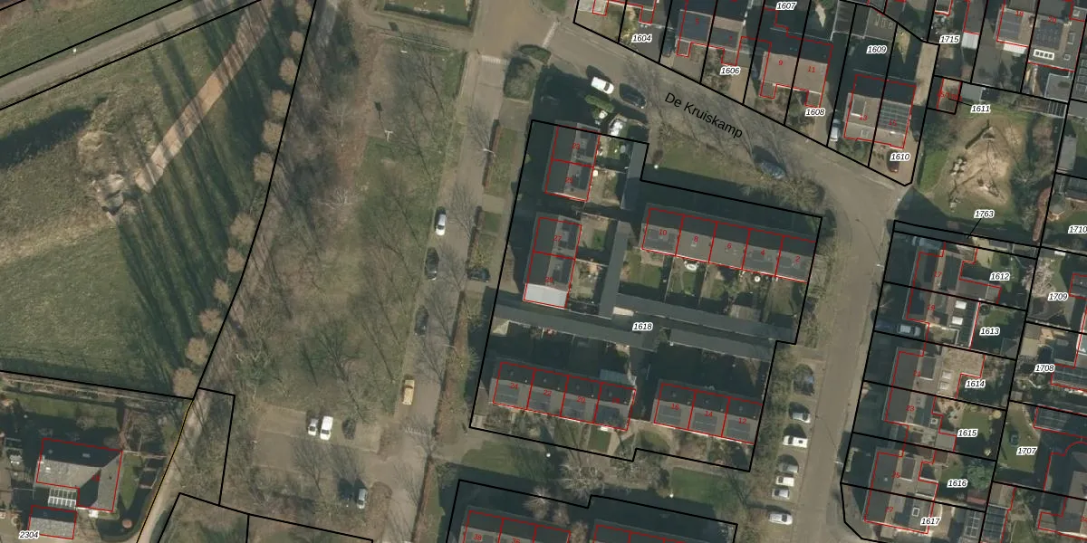 Het adres is gelegen op perceel 1618 in de sectie C en de kadastrale gemeente Overasselt. De kadastrale aanduiding is aldus OVA00-C-1618. Het perceel is 2840 m² groot. Dat is kleiner dan de gemiddelde perceeloppervlakte in Overasselt, dat op 6600,61 m² ligt. Het grootste perceel in de kadastrale gemeente is 60,9 ha. Het kleinste perceel heeft een oppervlakte van 0 m². Op het perceel liggen in totaal 16 adressen. De huidige grenzen van het perceel zijn digitaal in de Basisregistratie Kadaster (BRK) geregistreerd op 31-10-2002.