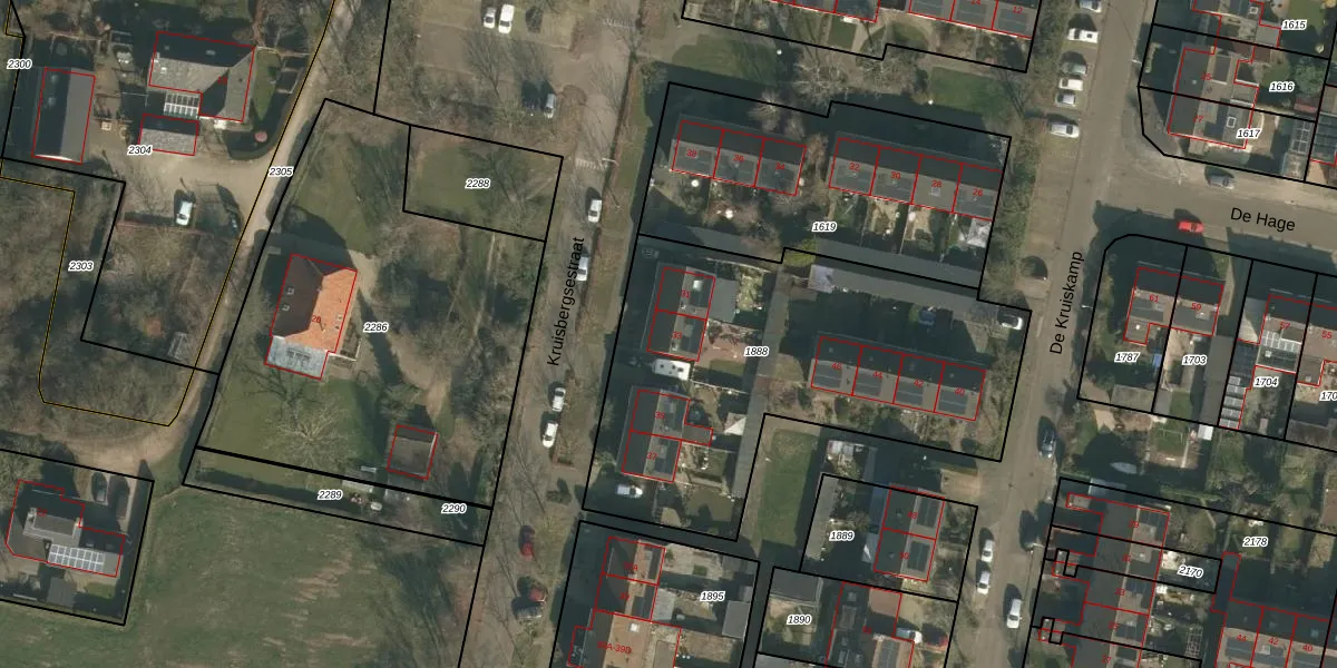 Het perceel waarop Kruisbergsestraat 33 staat heeft een oppervlakte van 1870 m². Dit is een zeer groot perceel. De perceeloppervlakte wordt geregistreerd door het Kadaster. Gedetailleerde informatie over de maten van dit perceel kunt u vinden in het rapport Kadastrale kaart met maatvoering van Kruisbergsestraat 33.