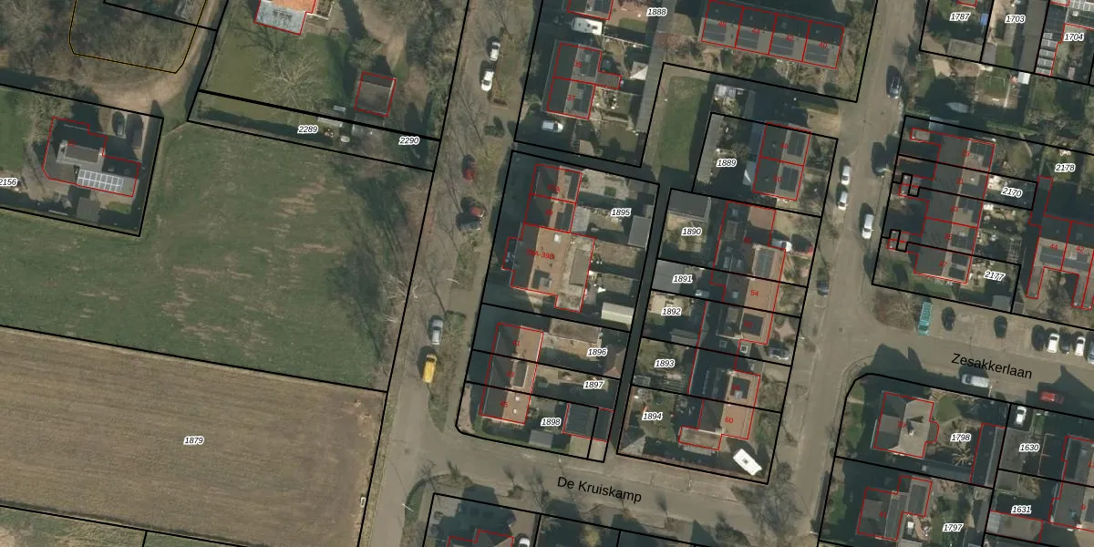 Het perceel waarop Kruisbergsestraat 39-D staat heeft een oppervlakte van 780 m². Dit is een groot perceel. De perceeloppervlakte wordt geregistreerd door het Kadaster. Gedetailleerde informatie over de maten van dit perceel kunt u vinden in het rapport Kadastrale kaart met maatvoering van Kruisbergsestraat 39-D.