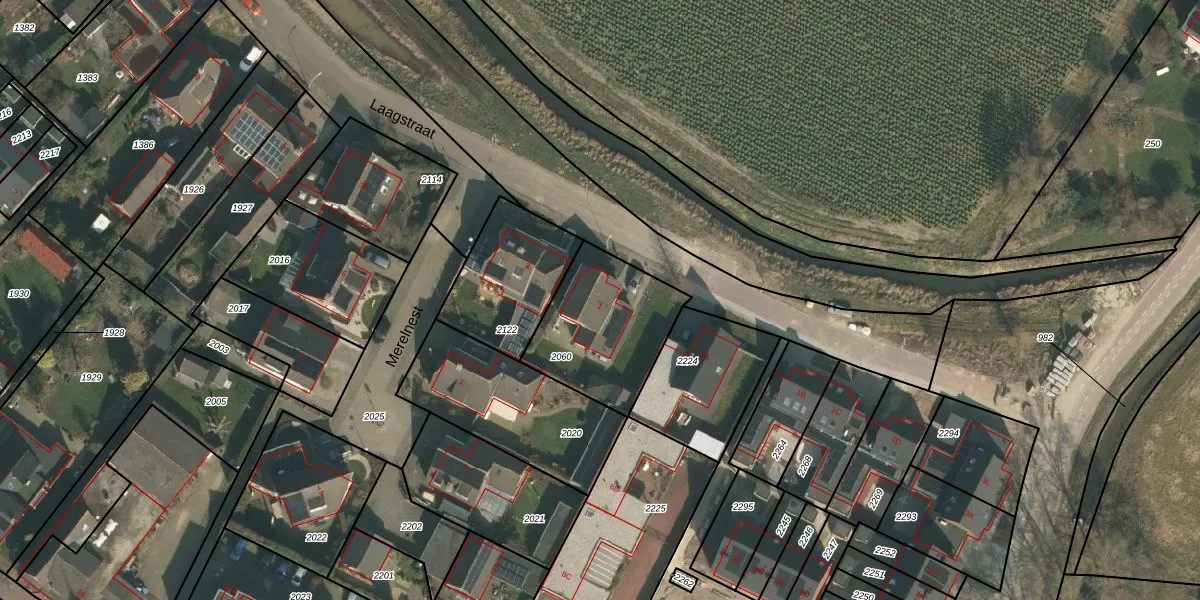Laagstraat 1 is gelegen op kadastraal perceel OVA00C2060. Deze kadastrale aanduiding is uniek en wordt gebruikt door het Kadaster om eigendomsrechten en andere zakelijke rechten vast te leggen. Het perceel maakt onderdeel uit van de kadastrale gemeente Overasselt.