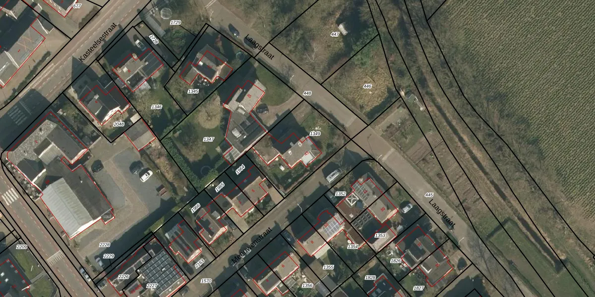 Laagstraat 43 is gelegen op kadastraal perceel OVA00C1349. Deze kadastrale aanduiding is uniek en wordt gebruikt door het Kadaster om eigendomsrechten en andere zakelijke rechten vast te leggen. Het perceel maakt onderdeel uit van de kadastrale gemeente Overasselt.