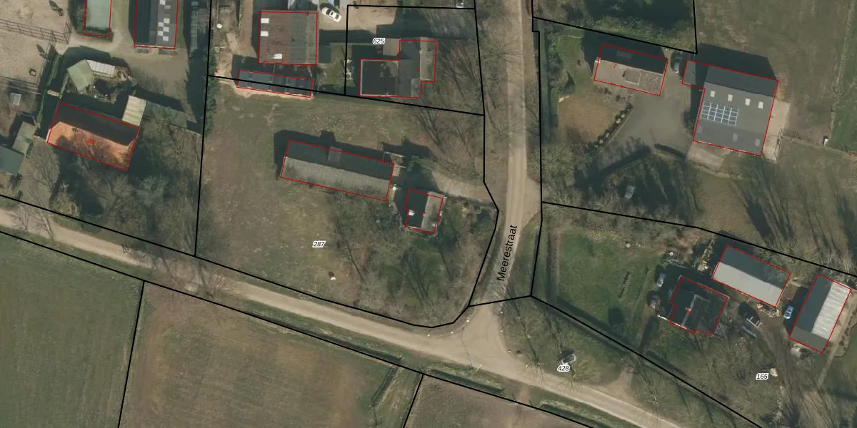 Het perceel waarop Meerestraat 6 staat heeft een oppervlakte van 3160 m². Dit is een zeer groot perceel. De perceeloppervlakte wordt geregistreerd door het Kadaster. Gedetailleerde informatie over de maten van dit perceel kunt u vinden in het rapport Kadastrale kaart met maatvoering van Meerestraat 6.