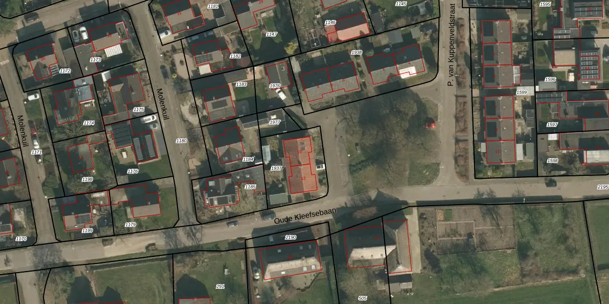 P. van Kuppenveldstraat 10 is gelegen op kadastraal perceel OVA00C1937. Deze kadastrale aanduiding is uniek en wordt gebruikt door het Kadaster om eigendomsrechten en andere zakelijke rechten vast te leggen. Het perceel maakt onderdeel uit van de kadastrale gemeente Overasselt.