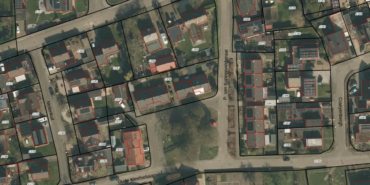 Het perceel waarop P. van Kuppenveldstraat 4 staat heeft een oppervlakte van 935 m². Dit is een groot perceel. De perceeloppervlakte wordt geregistreerd door het Kadaster. Gedetailleerde informatie over de maten van dit perceel kunt u vinden in het rapport Kadastrale kaart met maatvoering van P. van Kuppenveldstraat 4.