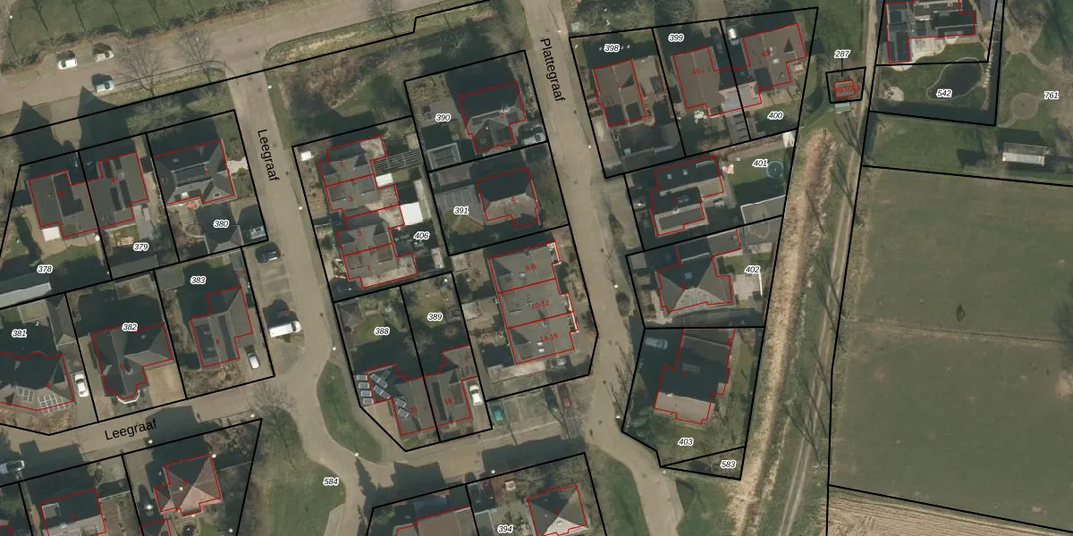 Het perceel waarop Plattegraaf 8 staat heeft een oppervlakte van 1340 m². Dit is een zeer groot perceel. De perceeloppervlakte wordt geregistreerd door het Kadaster. Gedetailleerde informatie over de maten van dit perceel kunt u vinden in het rapport Kadastrale kaart met maatvoering van Plattegraaf 8.