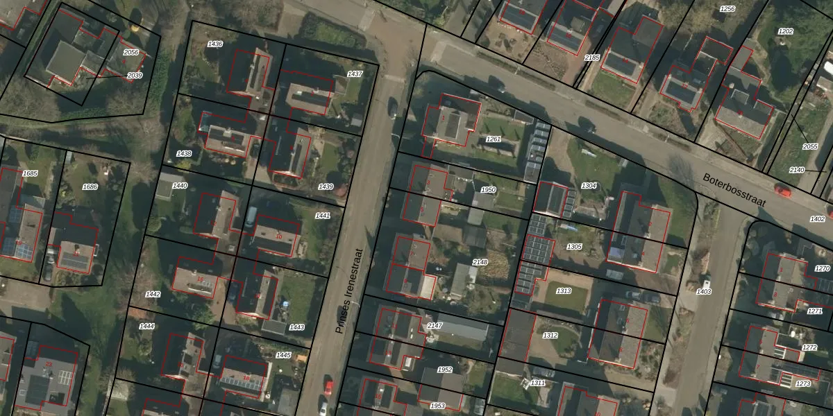 Het perceel waarop Prinses Irenestraat 5 staat heeft een oppervlakte van 917 m². Dit is een groot perceel. De perceeloppervlakte wordt geregistreerd door het Kadaster. Gedetailleerde informatie over de maten van dit perceel kunt u vinden in het rapport Kadastrale kaart met maatvoering van Prinses Irenestraat 5.