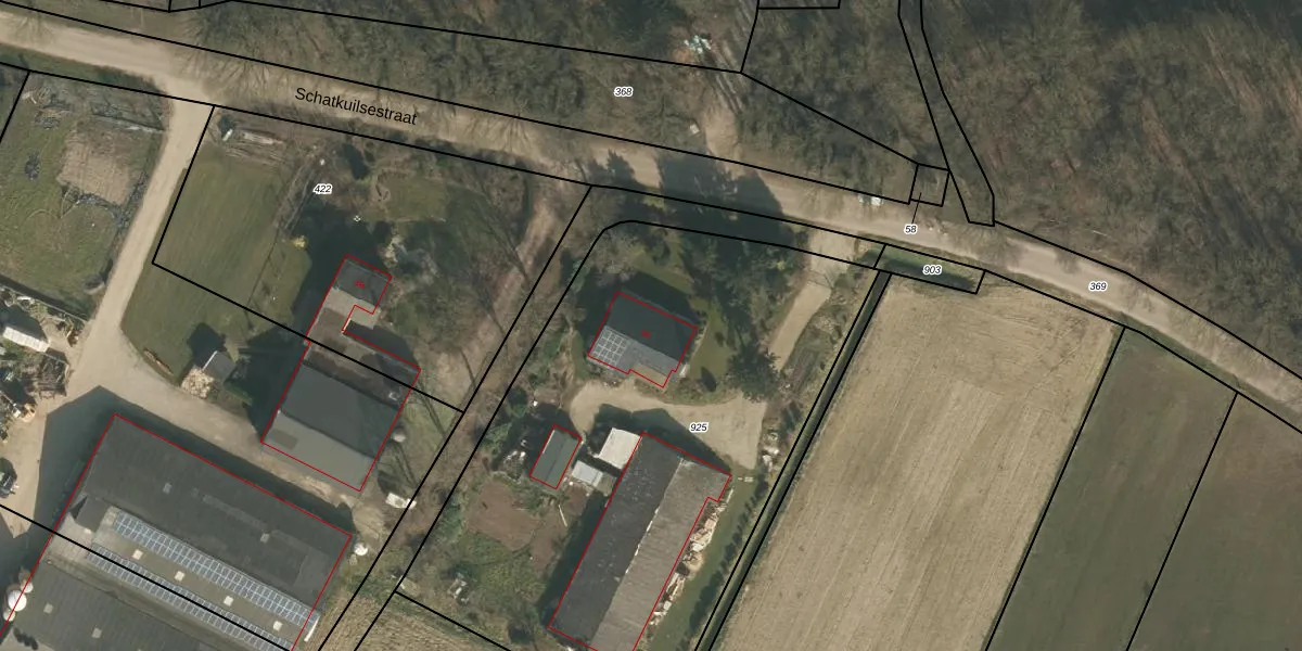 Het perceel waarop Schatkuilsestraat 3-A staat heeft een oppervlakte van 3135 m². Dit is een zeer groot perceel. De perceeloppervlakte wordt geregistreerd door het Kadaster. Gedetailleerde informatie over de maten van dit perceel kunt u vinden in het rapport Kadastrale kaart met maatvoering van Schatkuilsestraat 3-A.