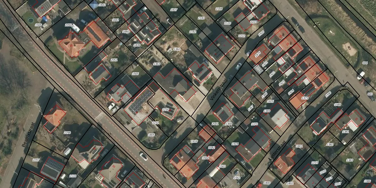 Het perceel waarop Vinkenstraat 1 staat heeft een oppervlakte van 525 m². Dit is een groot perceel. De perceeloppervlakte wordt geregistreerd door het Kadaster. Gedetailleerde informatie over de maten van dit perceel kunt u vinden in het rapport Kadastrale kaart met maatvoering van Vinkenstraat 1.