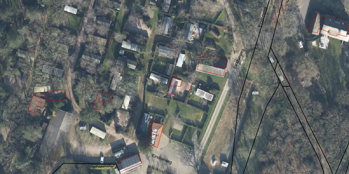 Het perceel waarop Eindseweg 2-r-C6 staat heeft een oppervlakte van 4,7 ha. Dit is een zeer groot perceel. De perceeloppervlakte wordt geregistreerd door het Kadaster. Gedetailleerde informatie over de maten van dit perceel kunt u vinden in het rapport Kadastrale kaart met maatvoering van Eindseweg 2-r-C6.