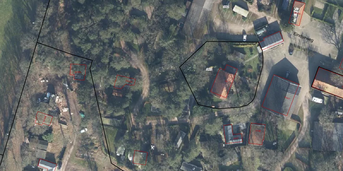 Het perceel waarop Eindseweg 2-r-B20 staat heeft een oppervlakte van 4,7 ha. Dit is een zeer groot perceel. De perceeloppervlakte wordt geregistreerd door het Kadaster. Gedetailleerde informatie over de maten van dit perceel kunt u vinden in het rapport Kadastrale kaart met maatvoering van Eindseweg 2-r-B20.