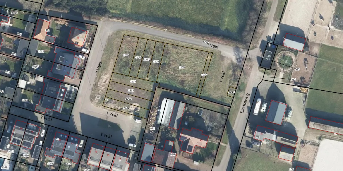 Het perceel waarop 't Veld 4-a staat heeft een oppervlakte van 665 m². Dit is een groot perceel. De perceeloppervlakte wordt geregistreerd door het Kadaster. Gedetailleerde informatie over de maten van dit perceel kunt u vinden in het rapport Kadastrale kaart met maatvoering van 't Veld 4-a.