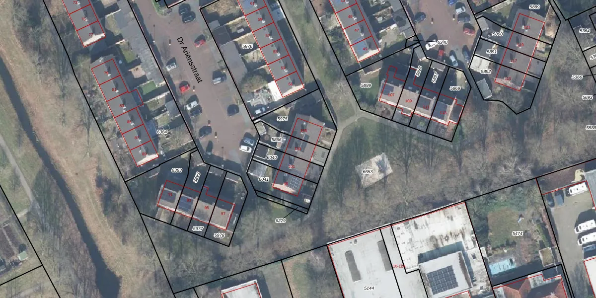 Het perceel waarop Dr Ariënsstraat 103 staat heeft een oppervlakte van 155 m². Dit is een middelgroot perceel. De perceeloppervlakte wordt geregistreerd door het Kadaster. Gedetailleerde informatie over de maten van dit perceel kunt u vinden in het rapport Kadastrale kaart met maatvoering van Dr Ariënsstraat 103.