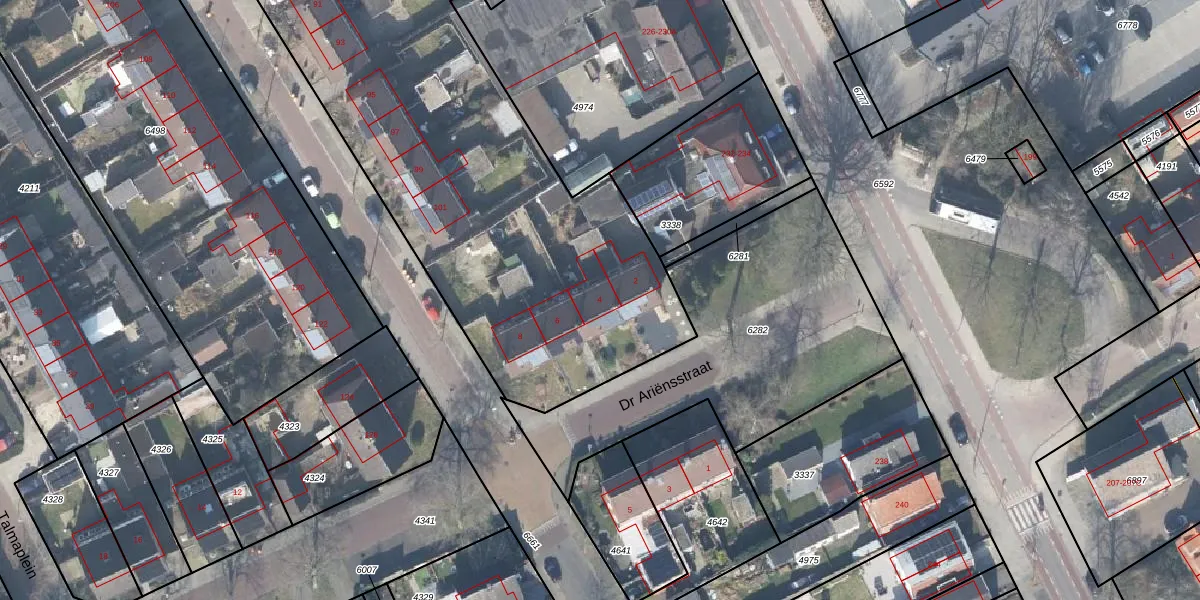 Het perceel waarop Dr Ariënsstraat 4 staat heeft een oppervlakte van 5380 m². Dit is een zeer groot perceel. De perceeloppervlakte wordt geregistreerd door het Kadaster. Gedetailleerde informatie over de maten van dit perceel kunt u vinden in het rapport Kadastrale kaart met maatvoering van Dr Ariënsstraat 4.