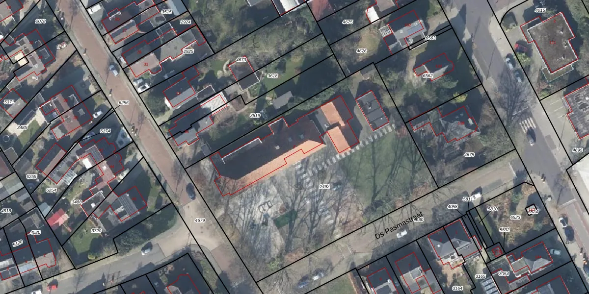 Het perceel waarop Ds Pasmastraat 2 staat heeft een oppervlakte van 3390 m². Dit is een zeer groot perceel. De perceeloppervlakte wordt geregistreerd door het Kadaster. Gedetailleerde informatie over de maten van dit perceel kunt u vinden in het rapport Kadastrale kaart met maatvoering van Ds Pasmastraat 2.