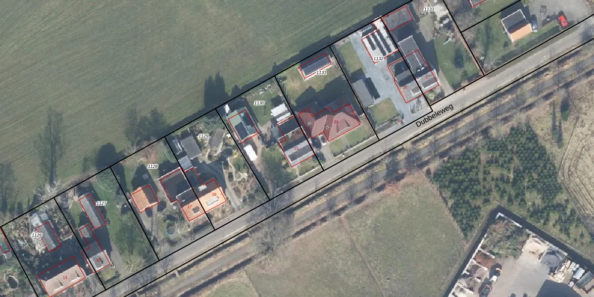 Dubbeleweg 21 is gelegen op kadastraal perceel LSR00Q1130. Deze kadastrale aanduiding is uniek en wordt gebruikt door het Kadaster om eigendomsrechten en andere zakelijke rechten vast te leggen. Het perceel maakt onderdeel uit van de kadastrale gemeente Losser.