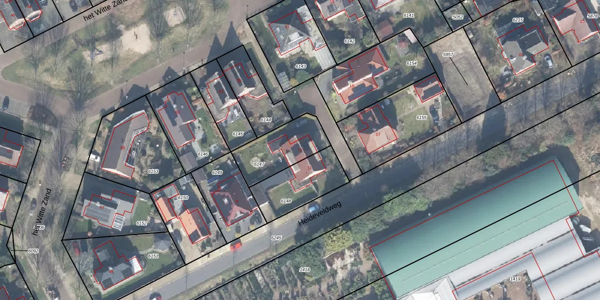 Heideveldweg 13 is gelegen op kadastraal perceel LSR00K6147. Deze kadastrale aanduiding is uniek en wordt gebruikt door het Kadaster om eigendomsrechten en andere zakelijke rechten vast te leggen. Het perceel maakt onderdeel uit van de kadastrale gemeente Losser.