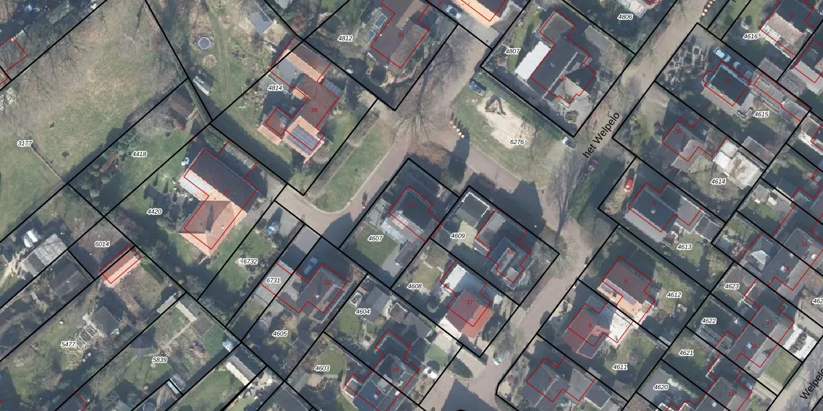 Het perceel waarop het Welpelo 21 staat heeft een oppervlakte van 449 m². Dit is een groot perceel. De perceeloppervlakte wordt geregistreerd door het Kadaster. Gedetailleerde informatie over de maten van dit perceel kunt u vinden in het rapport Kadastrale kaart met maatvoering van het Welpelo 21.