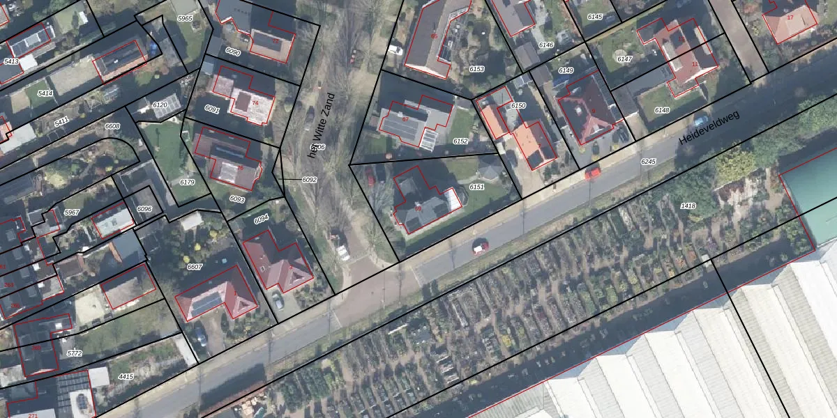 Het perceel waarop het Witte Zand 69 staat heeft een oppervlakte van 636 m². Dit is een groot perceel. De perceeloppervlakte wordt geregistreerd door het Kadaster. Gedetailleerde informatie over de maten van dit perceel kunt u vinden in het rapport Kadastrale kaart met maatvoering van het Witte Zand 69.