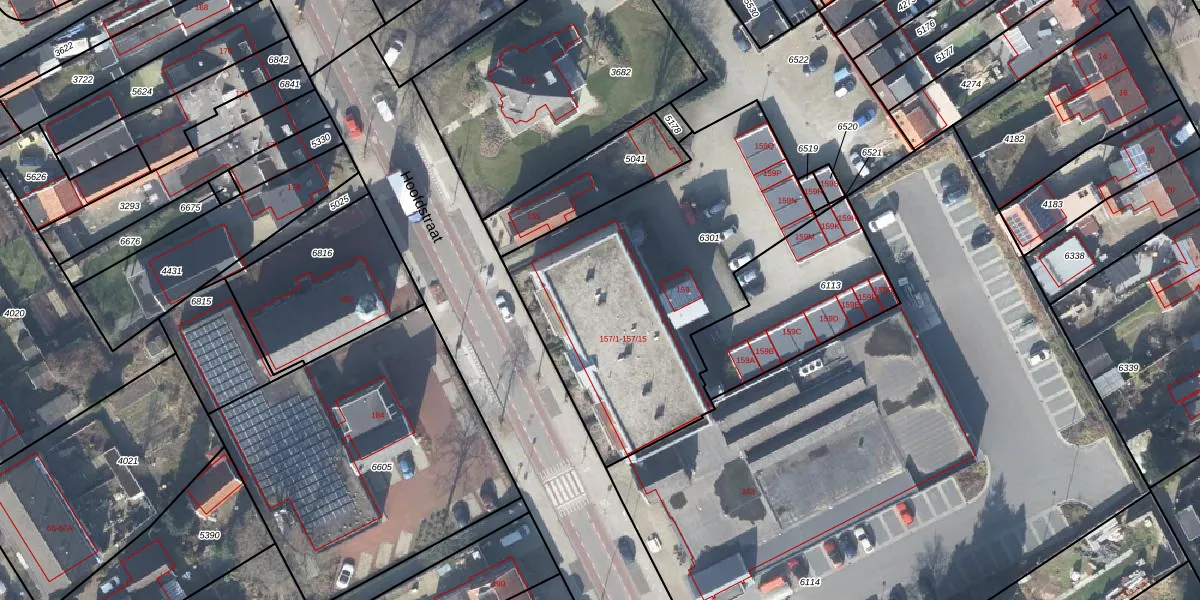 Het perceel waarop Hoofdstraat 157-7 staat heeft een oppervlakte van 1528 m². Dit is een zeer groot perceel. De perceeloppervlakte wordt geregistreerd door het Kadaster. Gedetailleerde informatie over de maten van dit perceel kunt u vinden in het rapport Kadastrale kaart met maatvoering van Hoofdstraat 157-7.