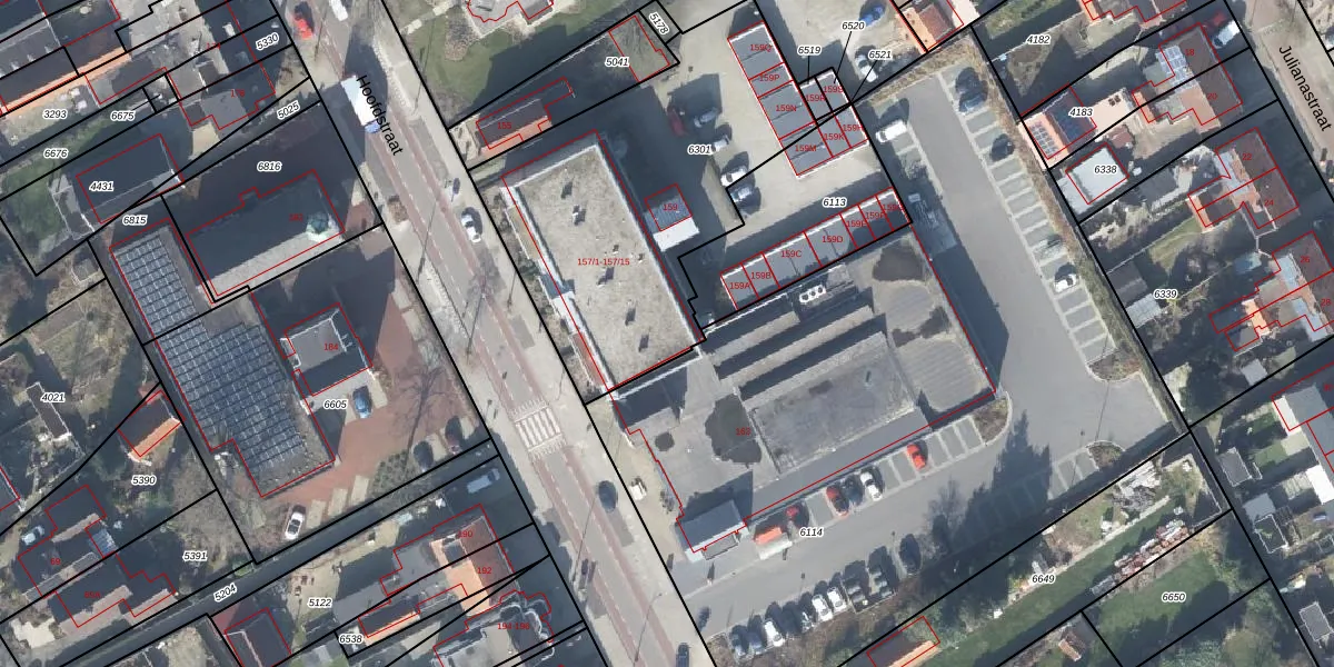 Hoofdstraat 157-15 is gelegen op kadastraal perceel LSR00K6301. Deze kadastrale aanduiding is uniek en wordt gebruikt door het Kadaster om eigendomsrechten en andere zakelijke rechten vast te leggen. Het perceel maakt onderdeel uit van de kadastrale gemeente Losser.