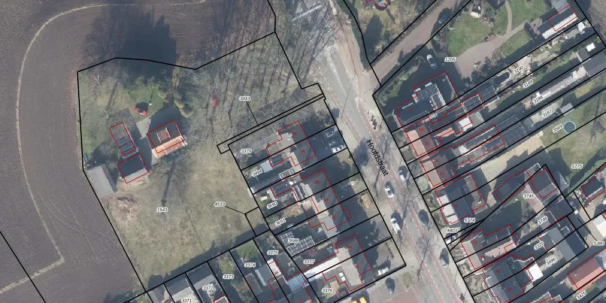 Het perceel waarop Hoofdstraat 36 staat heeft een oppervlakte van 307 m². Dit is een groot perceel. De perceeloppervlakte wordt geregistreerd door het Kadaster. Gedetailleerde informatie over de maten van dit perceel kunt u vinden in het rapport Kadastrale kaart met maatvoering van Hoofdstraat 36.