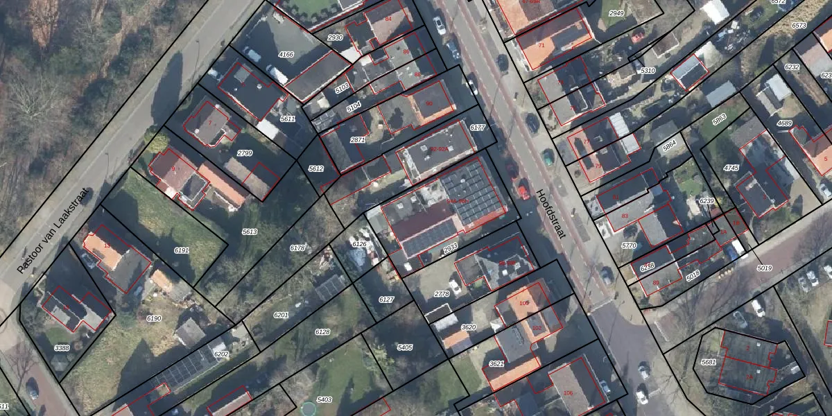 Het perceel waarop Hoofdstraat 96-D staat heeft een oppervlakte van 606 m². Dit is een groot perceel. De perceeloppervlakte wordt geregistreerd door het Kadaster. Gedetailleerde informatie over de maten van dit perceel kunt u vinden in het rapport Kadastrale kaart met maatvoering van Hoofdstraat 96-D.