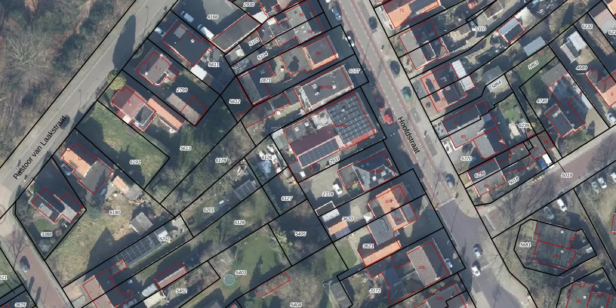 Het perceel waarop Hoofdstraat 96-F staat heeft een oppervlakte van 606 m². Dit is een groot perceel. De perceeloppervlakte wordt geregistreerd door het Kadaster. Gedetailleerde informatie over de maten van dit perceel kunt u vinden in het rapport Kadastrale kaart met maatvoering van Hoofdstraat 96-F.
