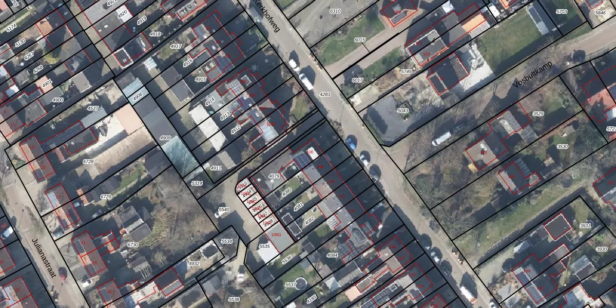 Kerkhofweg 106 is gelegen op kadastraal perceel LSR00K4079. Deze kadastrale aanduiding is uniek en wordt gebruikt door het Kadaster om eigendomsrechten en andere zakelijke rechten vast te leggen. Het perceel maakt onderdeel uit van de kadastrale gemeente Losser.