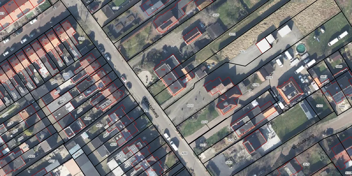 Kerkhofweg 163 is gelegen op kadastraal perceel LSR00K6311. Deze kadastrale aanduiding is uniek en wordt gebruikt door het Kadaster om eigendomsrechten en andere zakelijke rechten vast te leggen. Het perceel maakt onderdeel uit van de kadastrale gemeente Losser.
