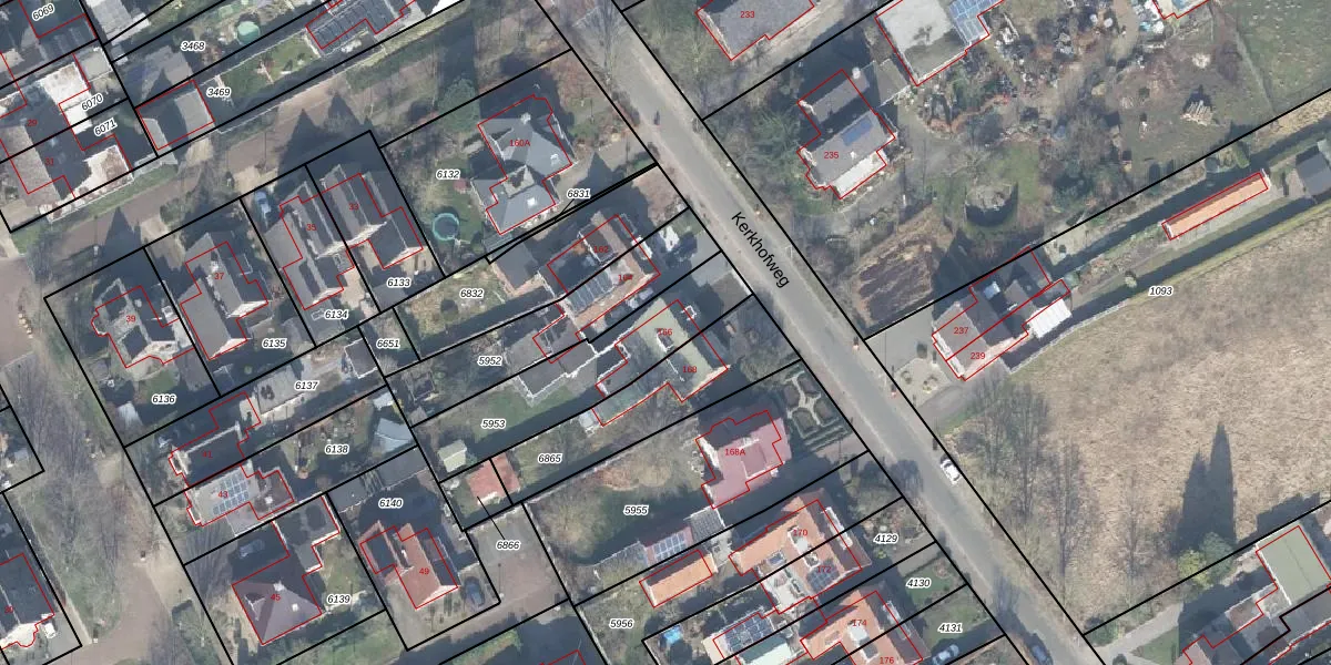 Kerkhofweg 166 is gelegen op kadastraal perceel LSR00K5953. Deze kadastrale aanduiding is uniek en wordt gebruikt door het Kadaster om eigendomsrechten en andere zakelijke rechten vast te leggen. Het perceel maakt onderdeel uit van de kadastrale gemeente Losser.