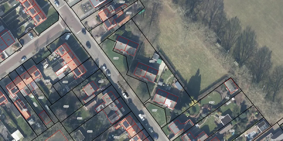 Het perceel waarop Kerkhofweg 79 staat heeft een oppervlakte van 1647 m². Dit is een zeer groot perceel. De perceeloppervlakte wordt geregistreerd door het Kadaster. Gedetailleerde informatie over de maten van dit perceel kunt u vinden in het rapport Kadastrale kaart met maatvoering van Kerkhofweg 79.