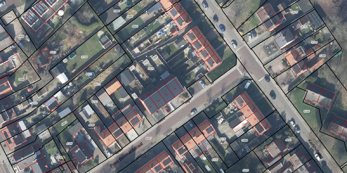 Het perceel waarop Prins Bernhardstraat 19 staat heeft een oppervlakte van 2822 m². Dit is een zeer groot perceel. De perceeloppervlakte wordt geregistreerd door het Kadaster. Gedetailleerde informatie over de maten van dit perceel kunt u vinden in het rapport Kadastrale kaart met maatvoering van Prins Bernhardstraat 19.
