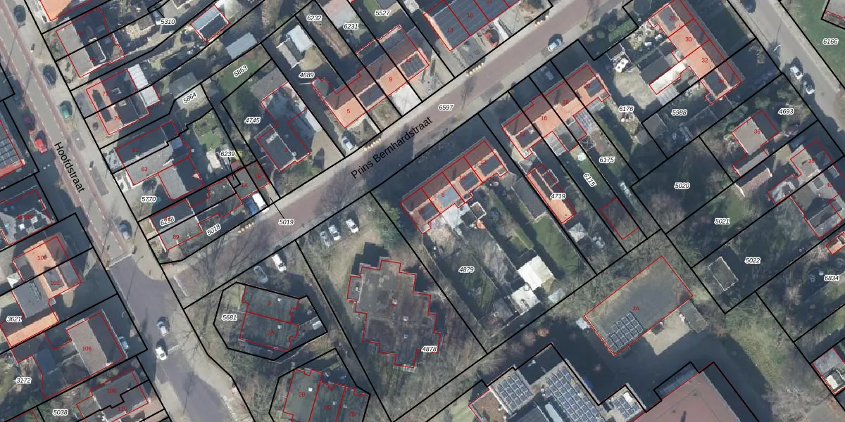 Het perceel waarop Prins Bernhardstraat 6 staat heeft een oppervlakte van 1492 m². Dit is een zeer groot perceel. De perceeloppervlakte wordt geregistreerd door het Kadaster. Gedetailleerde informatie over de maten van dit perceel kunt u vinden in het rapport Kadastrale kaart met maatvoering van Prins Bernhardstraat 6.