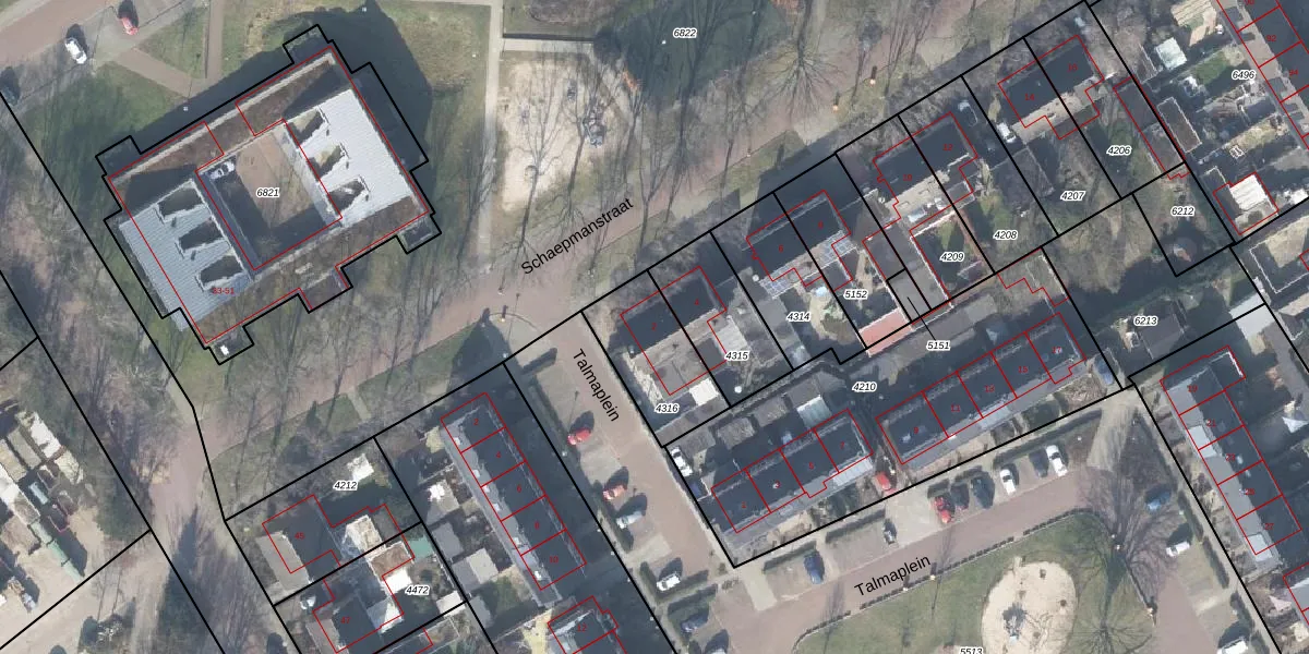 Het perceel waarop Schaepmanstraat 2 staat heeft een oppervlakte van 301 m². Dit is een groot perceel. De perceeloppervlakte wordt geregistreerd door het Kadaster. Gedetailleerde informatie over de maten van dit perceel kunt u vinden in het rapport Kadastrale kaart met maatvoering van Schaepmanstraat 2.