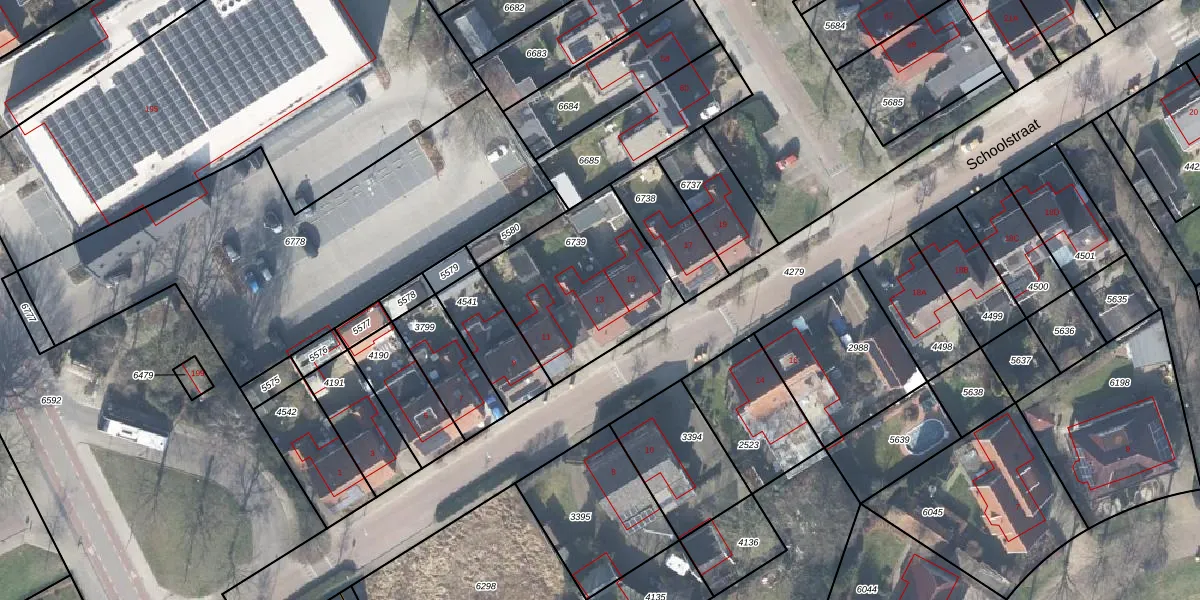 Het perceel waarop Schoolstraat 13 staat heeft een oppervlakte van 607 m². Dit is een groot perceel. De perceeloppervlakte wordt geregistreerd door het Kadaster. Gedetailleerde informatie over de maten van dit perceel kunt u vinden in het rapport Kadastrale kaart met maatvoering van Schoolstraat 13.