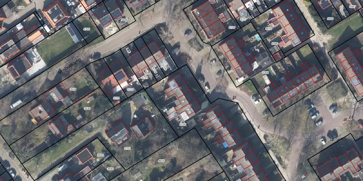 Het perceel waarop Veldkamp 105 staat heeft een oppervlakte van 2430 m². Dit is een zeer groot perceel. De perceeloppervlakte wordt geregistreerd door het Kadaster. Gedetailleerde informatie over de maten van dit perceel kunt u vinden in het rapport Kadastrale kaart met maatvoering van Veldkamp 105.