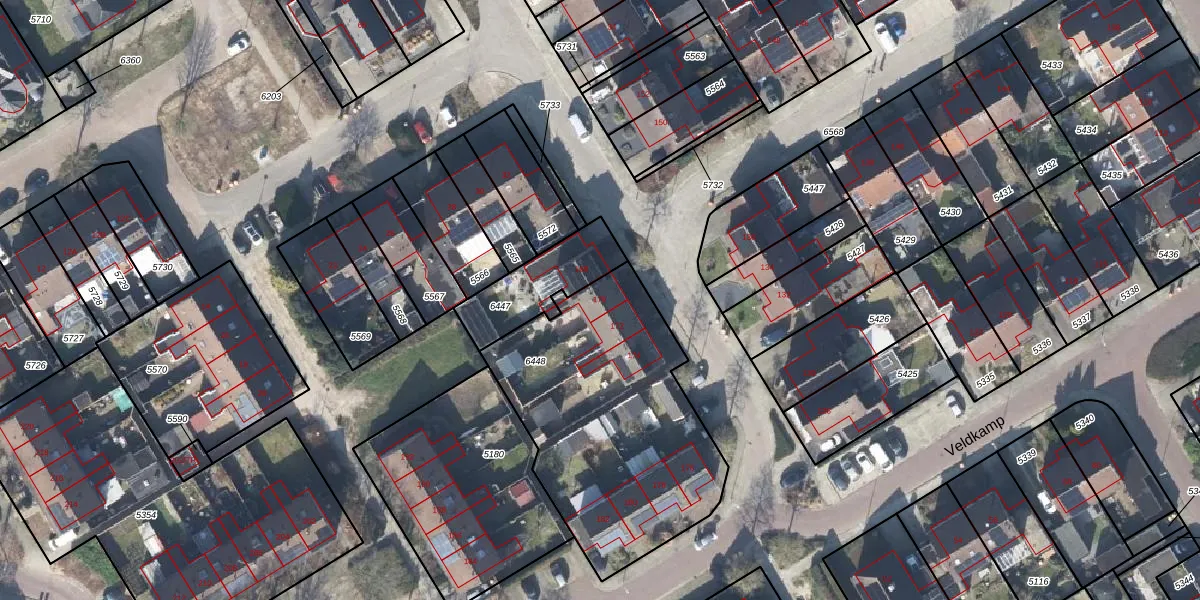 Het perceel waarop Veldkamp 170 staat heeft een oppervlakte van 1219 m². Dit is een zeer groot perceel. De perceeloppervlakte wordt geregistreerd door het Kadaster. Gedetailleerde informatie over de maten van dit perceel kunt u vinden in het rapport Kadastrale kaart met maatvoering van Veldkamp 170.