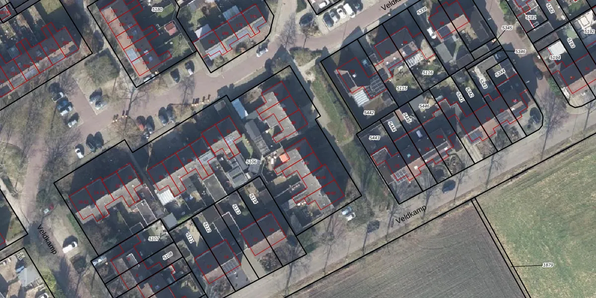 Het perceel waarop Veldkamp 40 staat heeft een oppervlakte van 3101 m². Dit is een zeer groot perceel. De perceeloppervlakte wordt geregistreerd door het Kadaster. Gedetailleerde informatie over de maten van dit perceel kunt u vinden in het rapport Kadastrale kaart met maatvoering van Veldkamp 40.