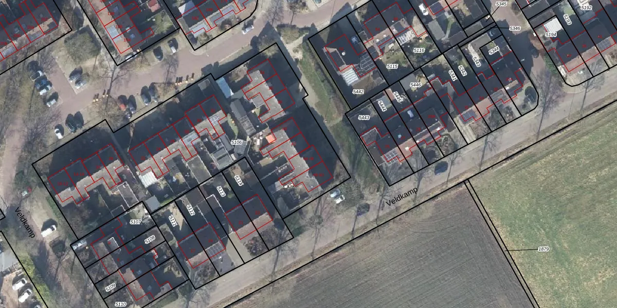 Veldkamp 44 is gelegen op kadastraal perceel LSR00K5106. Deze kadastrale aanduiding is uniek en wordt gebruikt door het Kadaster om eigendomsrechten en andere zakelijke rechten vast te leggen. Het perceel maakt onderdeel uit van de kadastrale gemeente Losser.