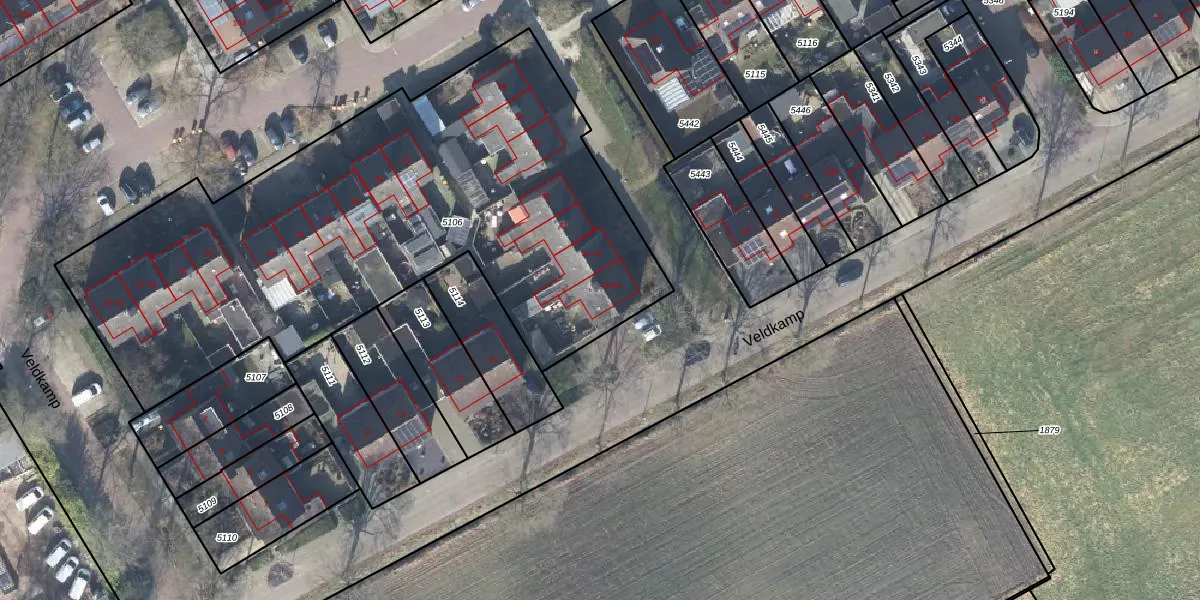 Het perceel waarop Veldkamp 48 staat heeft een oppervlakte van 3101 m². Dit is een zeer groot perceel. De perceeloppervlakte wordt geregistreerd door het Kadaster. Gedetailleerde informatie over de maten van dit perceel kunt u vinden in het rapport Kadastrale kaart met maatvoering van Veldkamp 48.