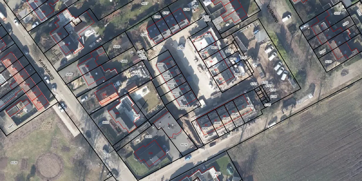 Veldkamp 5-A is gelegen op kadastraal perceel LSR00K6803. Deze kadastrale aanduiding is uniek en wordt gebruikt door het Kadaster om eigendomsrechten en andere zakelijke rechten vast te leggen. Het perceel maakt onderdeel uit van de kadastrale gemeente Losser.