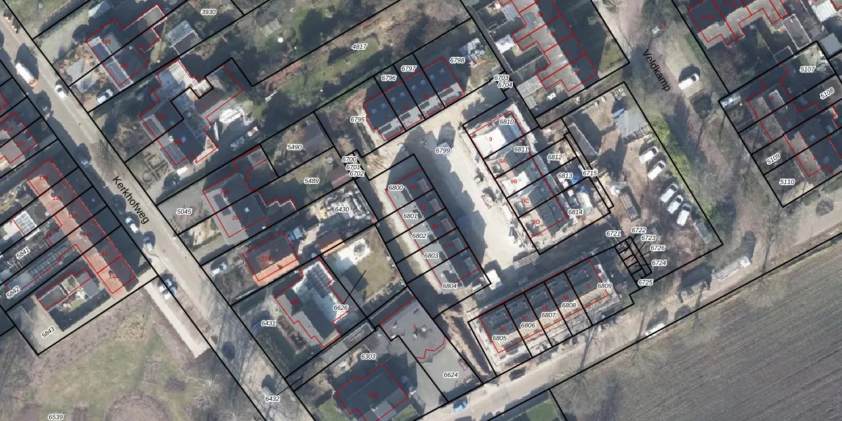 Veldkamp 5-C is gelegen op kadastraal perceel LSR00K6801. Deze kadastrale aanduiding is uniek en wordt gebruikt door het Kadaster om eigendomsrechten en andere zakelijke rechten vast te leggen. Het perceel maakt onderdeel uit van de kadastrale gemeente Losser.
